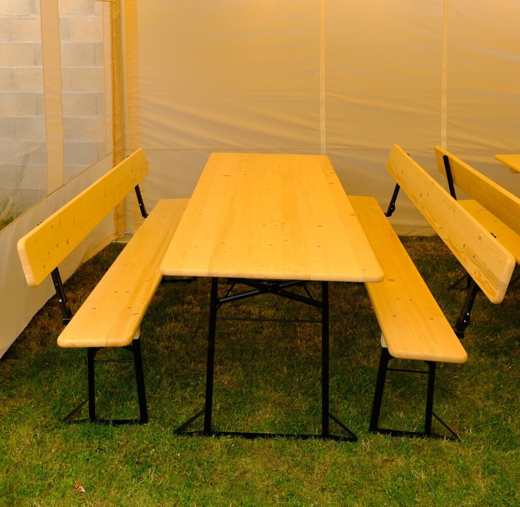 • Table 220x75cm Classic : Table pliante professionnelle, idéale pour réceptions, buffets, événements en plein air ou marchés. Structure en acier galvanisé, plateau bois verni, montage rapide sans outils.